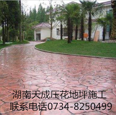 壓花地坪即彩色壓花藝術(shù)造型地坪是以特有的圖案框架現(xiàn)場澆筑、一體成形的壓花地坪系列,用現(xiàn)澆混凝土地面以特制模具有彩色印花料,采用先進(jìn)的技術(shù)、配合嚴(yán)謹(jǐn)?shù)氖┕す芾?,制作而成。它展現(xiàn)了多彩多姿的圖案模型及豐富變化的色彩,更具有耐磨、耐壓、止滑的效果及一體成型的特性,并具有多種實(shí)際用途。